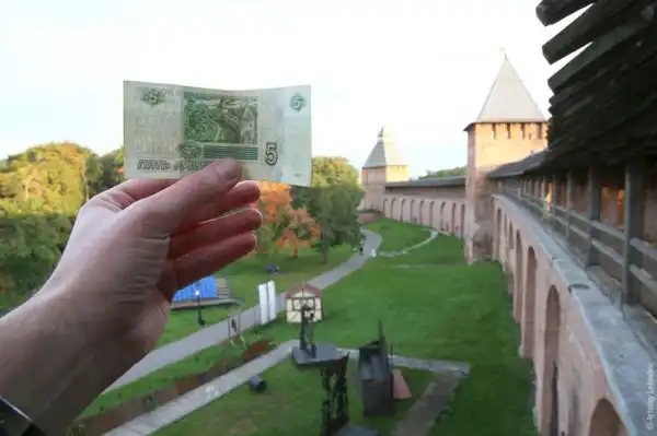 Разумеется, я сначала поехал искать фон в Нижний Новгород. Дело в том, что на купюре написано просто: "Новгород". Со второй попытки похожий ракурс был найден в нужном Новгороде.