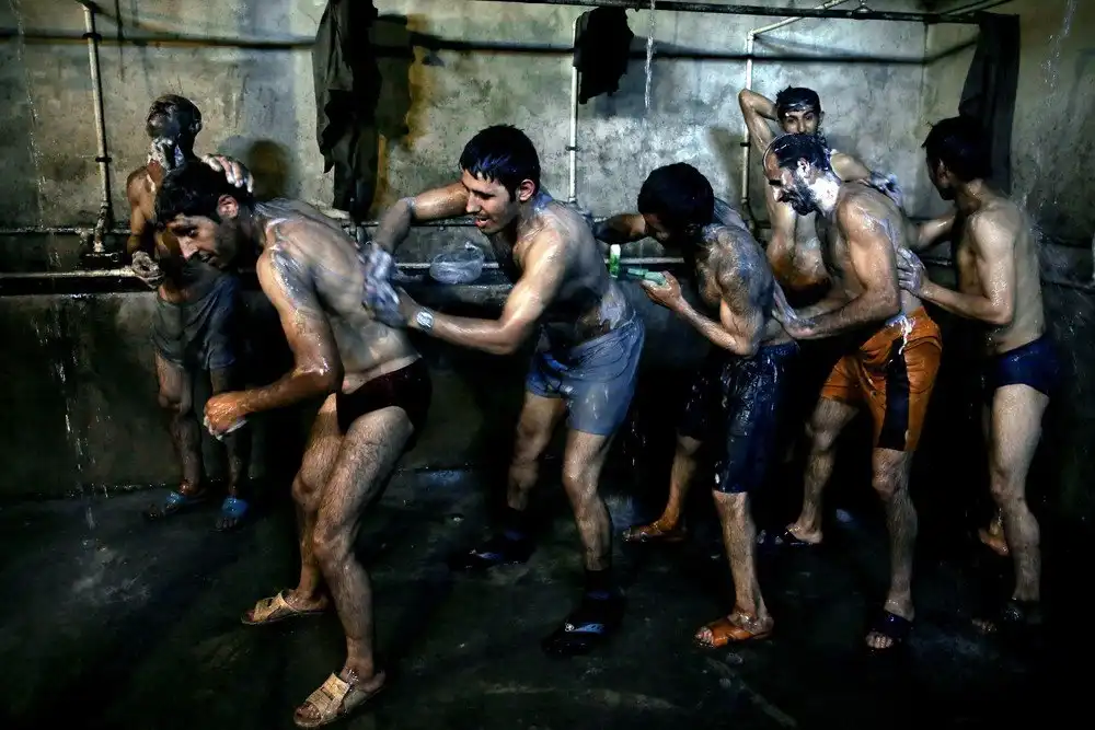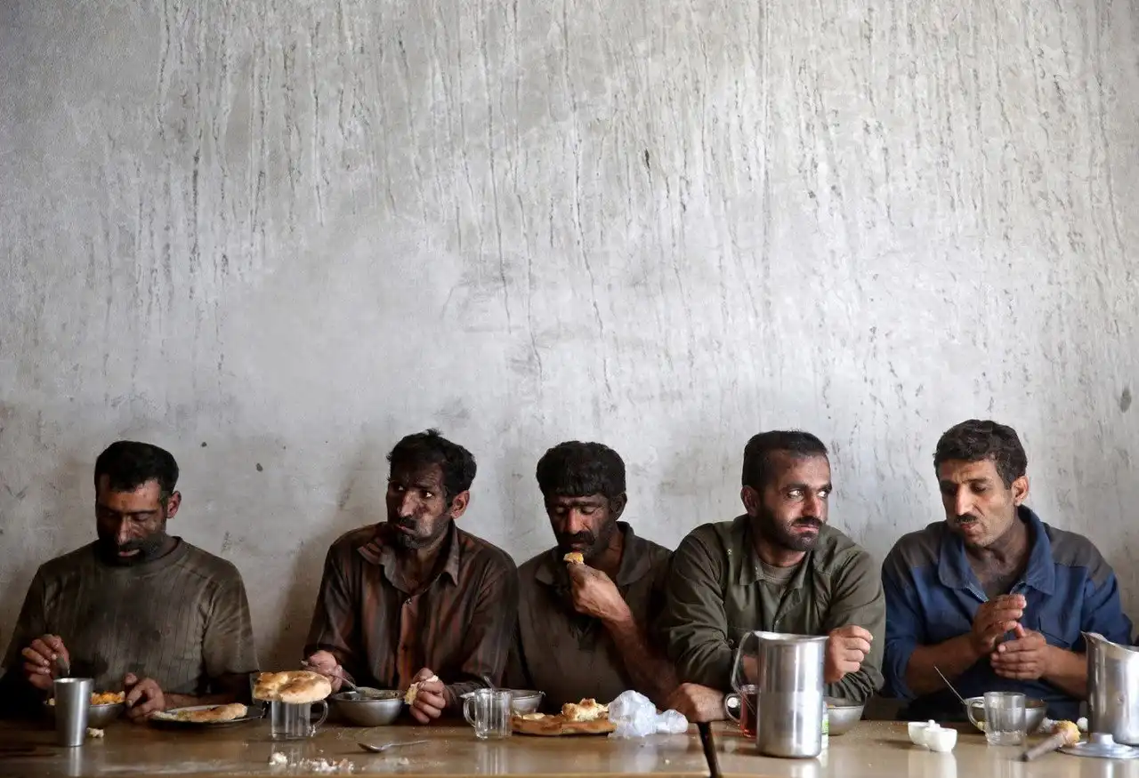 Обед шахтеров, шахта у города Зираб, Иран, 19 августа 2014.