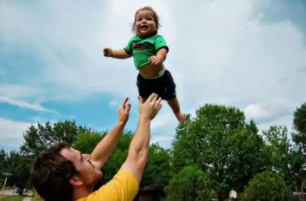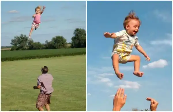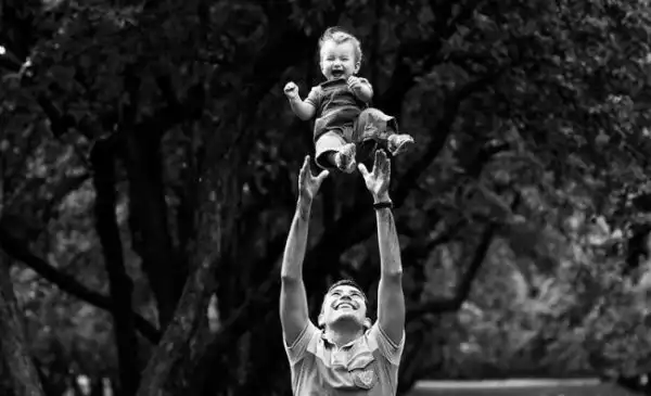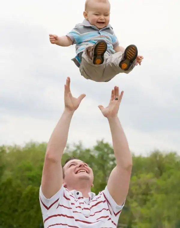 Развеселить ребенка — это так просто. Достаточно взять его и подбросить, как следует, вверх. И вот малыш уже хохочет от восторга — ведь в сильных папиных руках никакие полеты не страшны!