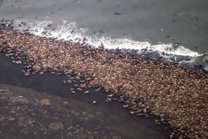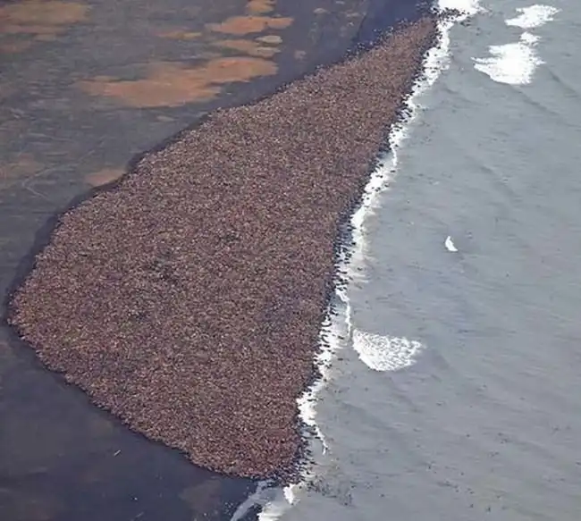 Вся береговая линия укрыта... огромным количеством моржей! Честно говоря, я никогда еще не видел такого скопления этих животных в одном месте.