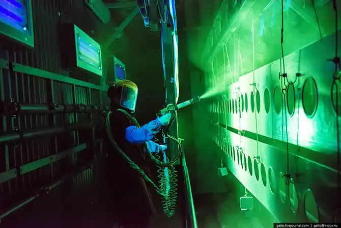 На гальваническом участке проводится подготовка поверхности детали под люмконтроль и анодирование. Через цеха покрытий и термообработки проходит до 95% деталей, изготовленных на заводе.