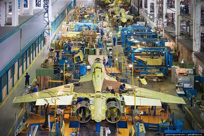 Агрегатно-сборочное производство. Линия сборки Су-30МКИ и Су-30СМ.