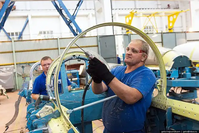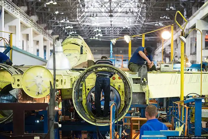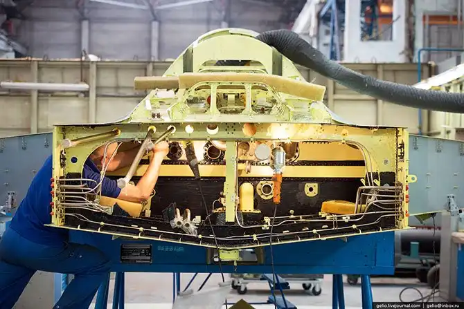 За монтаж и испытание основных систем самолета: гидравлики, топливной системы, двигателей, крыльев, шасси, бортового радиоэлектронного оборудования и вооружения в цехе отвечают 320 человек.