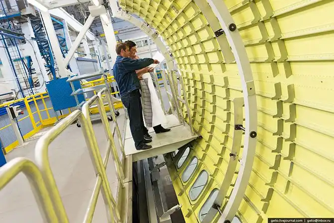 Затем их стыкуют и почти готовый летательный аппарат передается в цех окончательной сборки.