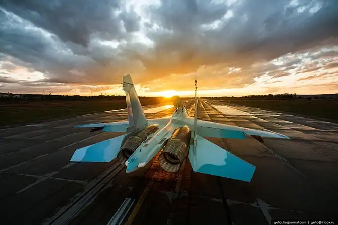 Это первый серийный самолет в мире, обладающий сверхманевренностью.