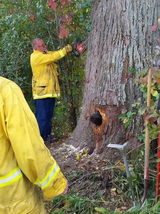 Когда лесной смотритель услышал отчаянные звериные крики, доносящиеся из леса, он тотчас же отправился выяснить, что происходит. Оказалось, что два медвежонка залезли в дерево через дупло, а вот выбраться оттуда уже не смогли. Мужчина вызвал спасательную службу, после чего животные были благополучно спасены.