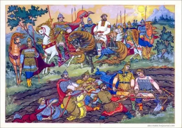 Не так давно, я уже выкладывал комплект открыток «Сказы П.Бажова» в рисунках В.Назарука, 1989 г., «Изобразительное искусство». Любители, держите еще один набор. Набор открыток «Былины», издательство «Советский художник», 1965 год, тираж 400 т.экз.