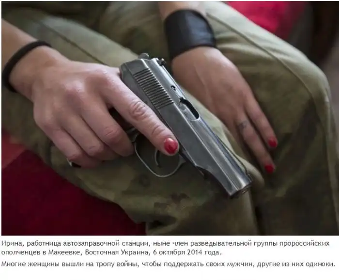 Восток Украины уже не первый месяц является местом боевых действий, а война не щадит и не оставляет в стороне никого, не важно, мужчина ты или женщина. Многие женщины не смогли остаться в стороне и воюют наряду с мужчинами. Некоторые из них воюют на стороне стороне Украины, некоторые поддерживают ополченцев.