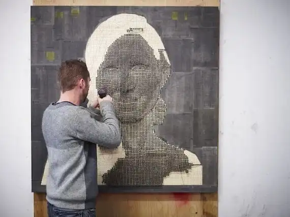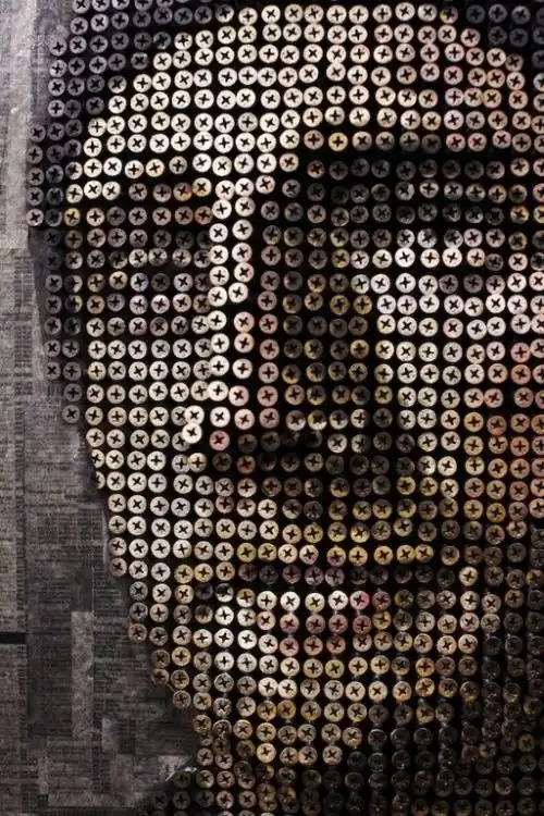Andrew Myers из Калифорнии самый терпеливый из современных скульпторов. Он берет доску, обклеивает ее страницами из телефонной книги, рисует лицо человека и вкручивает затем от 8.000 до 10.000 шурупов, придавая тем самым объемность изображению. В своей работе Myers не использует какие-либо специальные компьютерные программы или иные технологии. "Я считаю это традиционной скульптурой, за исключением того, что материалом служат шурупы"