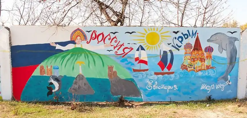 Многие рисунки исчерканы украинским вандалом, словно бы иллюстрируя то, что нам в один голос говорили все люди, с которыми мы разговаривали в Крыму: единственное, что все эти годы Украина делала в Крыму -- это обращала его в руину.