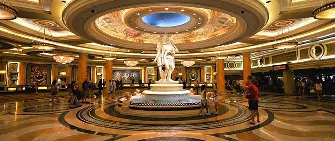 Caesar`s Palace – это шикарный и масштабный развлекательный комплекс, расположенный в самом сердце Лас-Вегаса. Казино, как и весь комплекс в целом, оформлено в стиле Древнего Рима и полностью отвечает своему названию «Дворец Цезаря». Казино грандиозно и роскошно. Мраморные колонны, статуи, колесницы, фонтаны, корабль Клеопатры, атмосфера элитной древности и азарта – все это сделало казино Caesar`s Palace очень почитаемым местом для игроков всего мира.