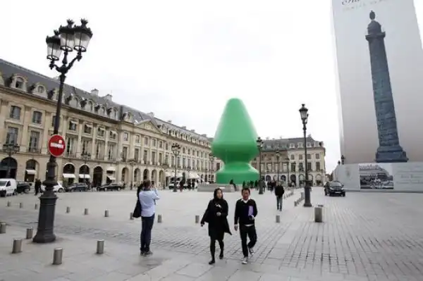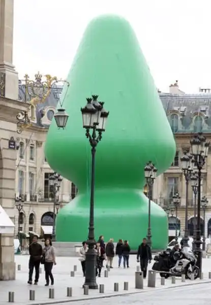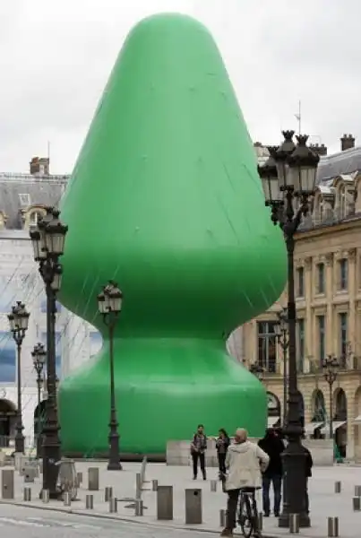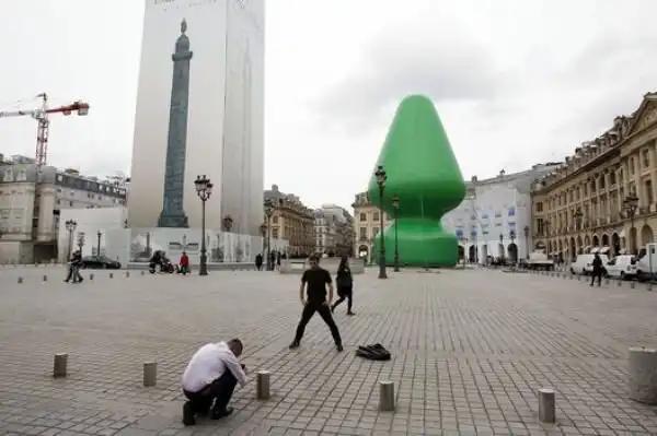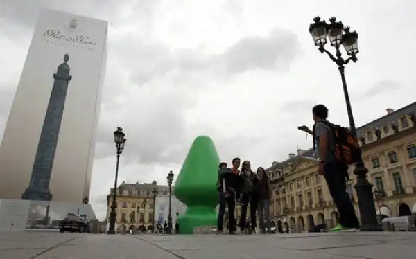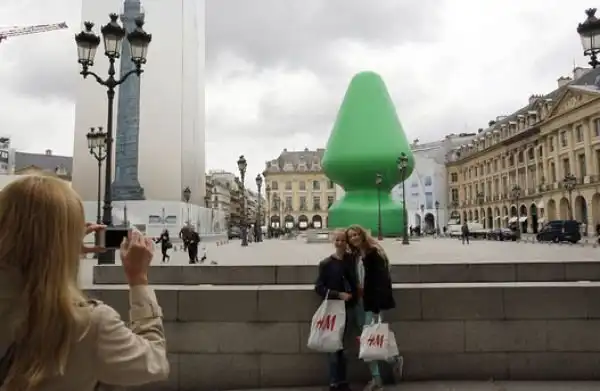 Современный художник Пол Маккарти, прославившийся своими надувными работами, возвел в Париже 25-метровый монумент, названный "Дерево".