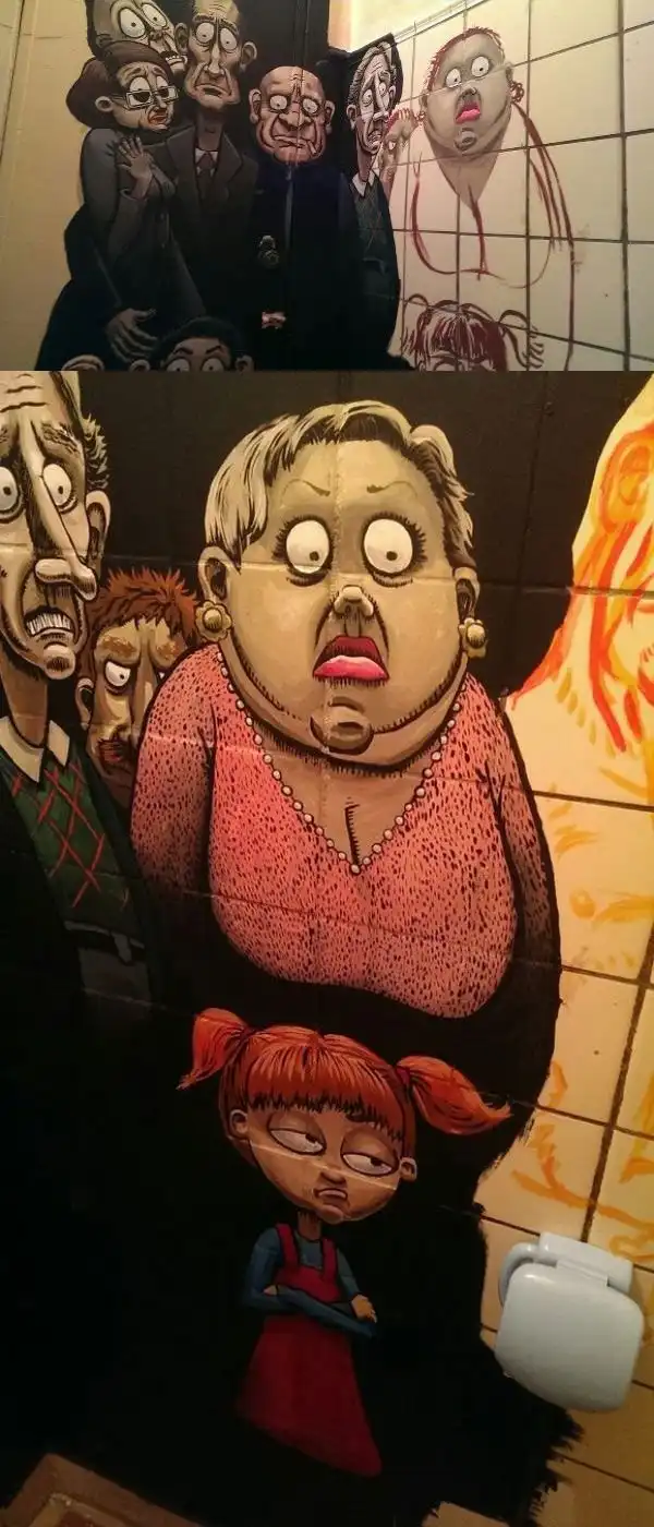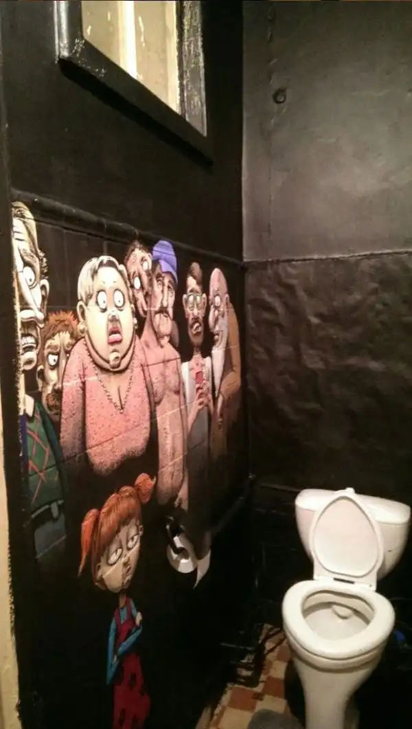 Если вам скучно в своем туалете, то предлагаем вот такой оригинальный вариант его отделки. Теперь главное постараться сосредоточится и не забыть при таком внимании, зачем пришел сюда.