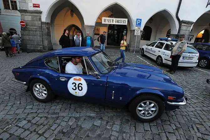 Ну и под занавес нашего путешествия в Крумлов мы увидели парад ретроавтомобилей.