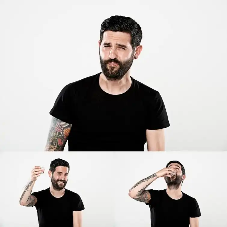 Британский фотограф Тим Чарльз приглашает в свою студию людей, наливает им по стопарику чего-то ядреного и фотографирует их во время вливания. Результатом стала серия фотографий "Shot Face".