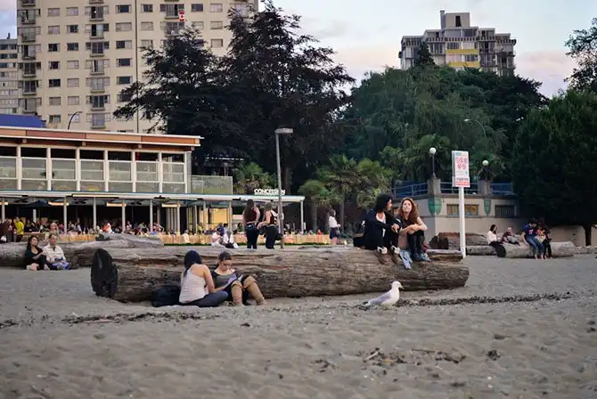 Если по-быстрому сдать прокатный велик, то на закат можно успеть на излюбленное место Ванкуверских хипстеров English Bay Beach.