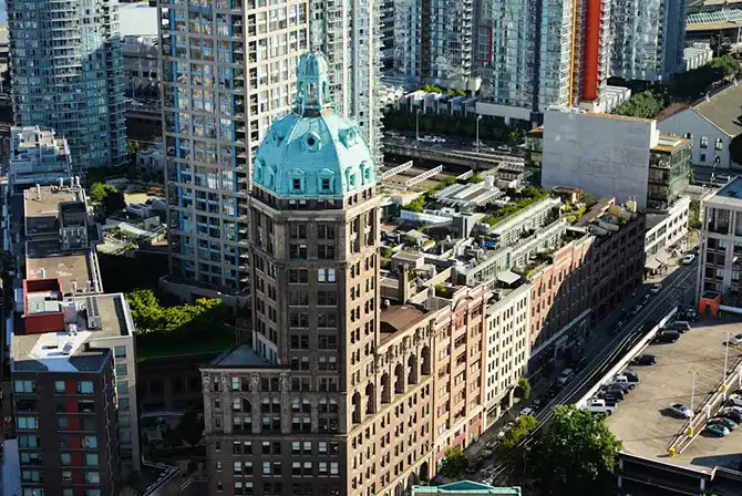 Внизу кусок Чайна-тауна, ванкуверский порт и ошметочек северного Ванкувера, если не ошибаюсь