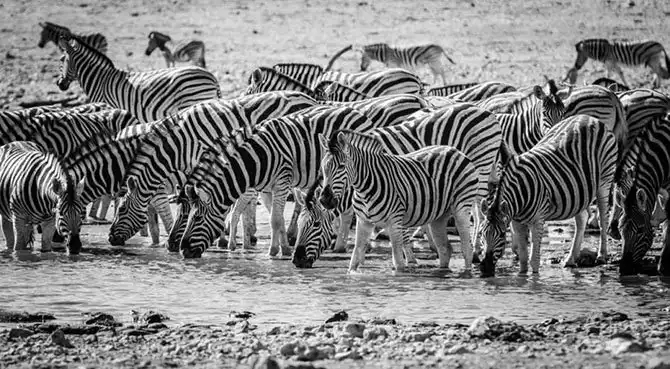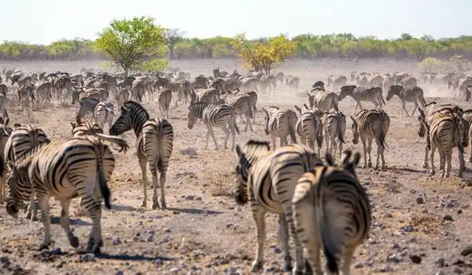 В наш второй день пребывания в парке мы натолкнулись на огромное стадо зебр. По крайней мере, 2500 из них переходили через дорогу, по которой мы ехали, и медленно, но продвигались к одному из крупнейших водоемов парка, пока он не стал невидимый за ними.