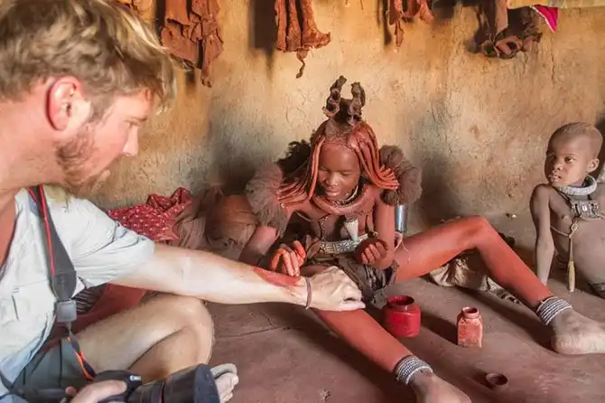 В месте водных процедур, химба (особенно женщины) наносят на себя ежедневный слой грязи. Это смесь глины, коровьего навоза, и измельченных растений и корней. Несмотря на аромат, эта смесь явно хорошо влияет на кожу.