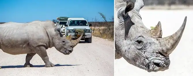 Намибия является единственной страной в Африке, где дикие популяции носорогов увеличиваются в количестве. Вопрос «Почему это происходит» активно обсуждается, но в парк Этоша носорога можно встретить достаточно часто, они не застенчивы и всегда очень хорошо защищены.
