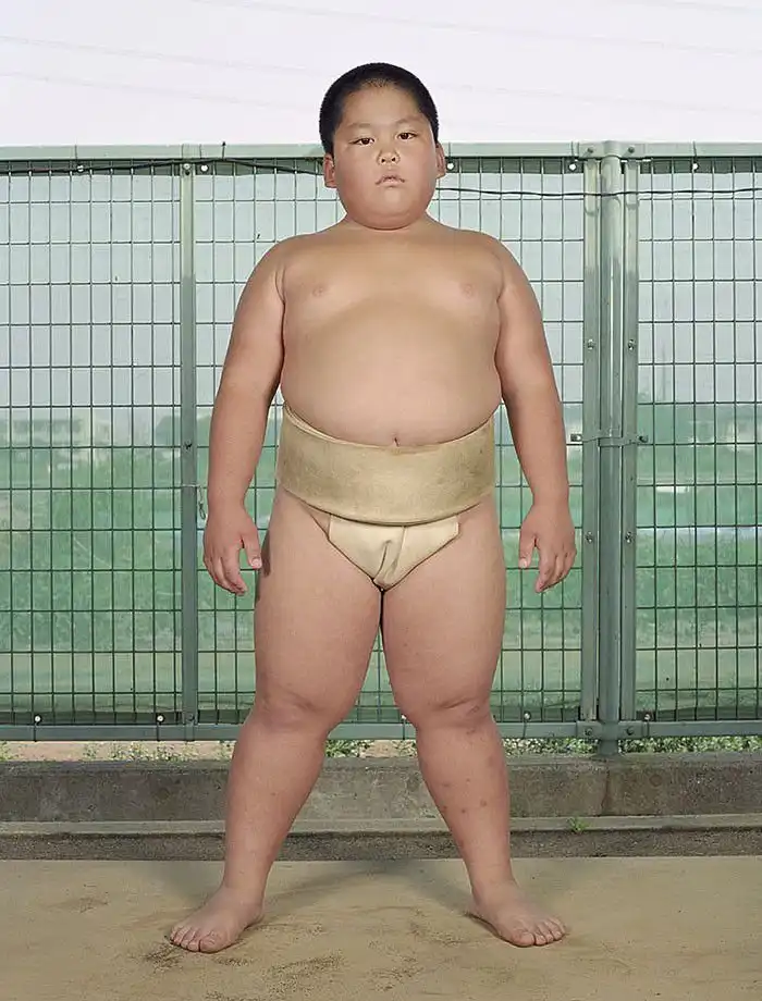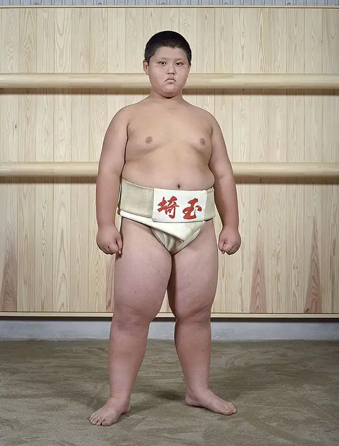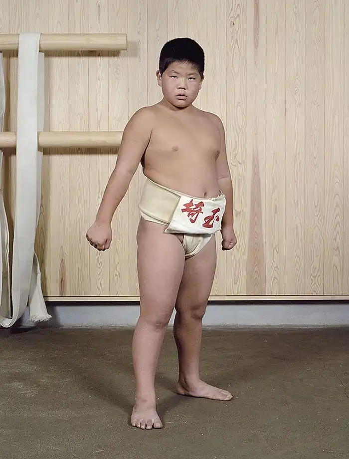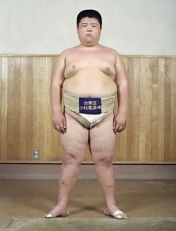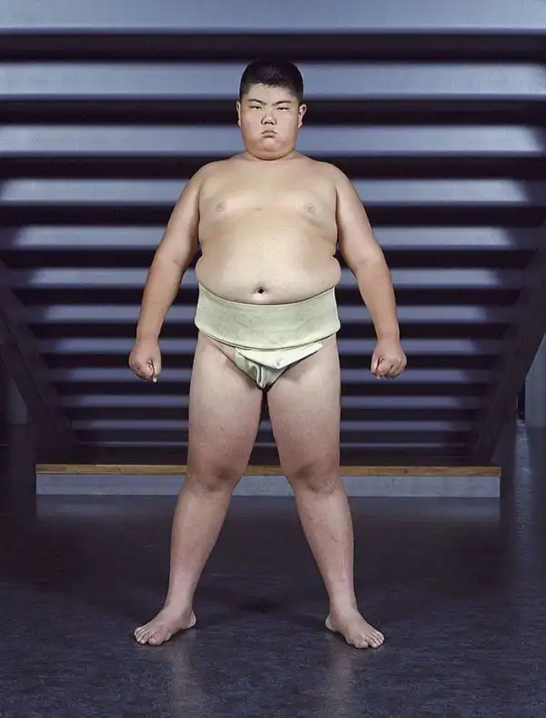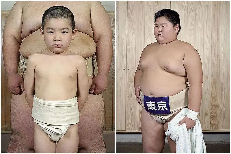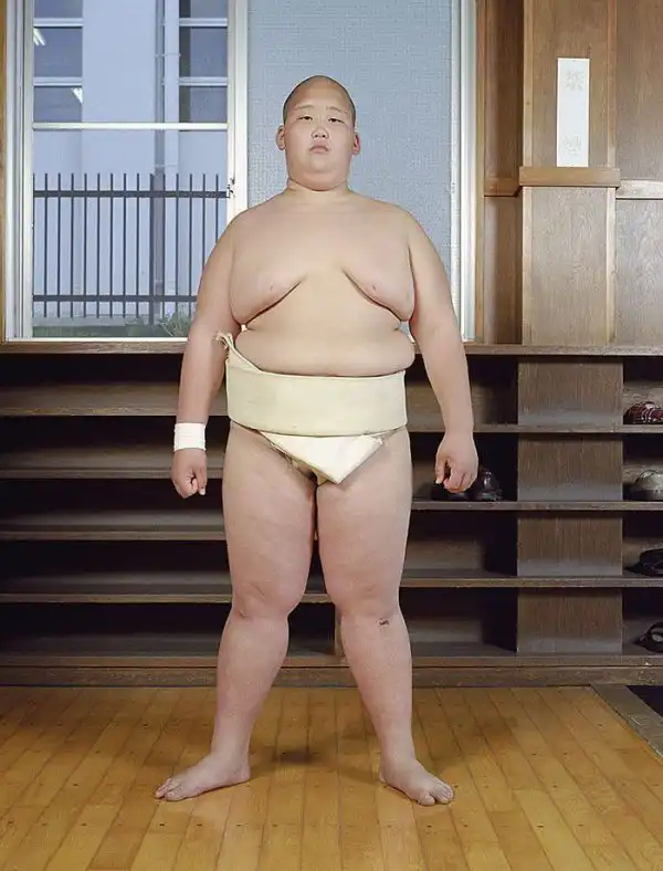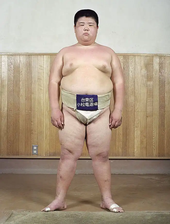Лица героев демонстрируют почтение; у большинства из них пронизывающий взгляд. Такой взгляд – своего рода подготовка в борьбе созерцательной, ведь сумо – это не просто телесная стачка, это и борьба психологическая, выраженная в борьбе взглядов – в прямом смысле этого слова. Порой опытный борец может упасть от напористого взгляда своего менее крупного соперника, в этом и заключена суть философии сумо. Но все же массивное тело для сумоистов также важно – даже многие юные борцы весят далеко за сотню.