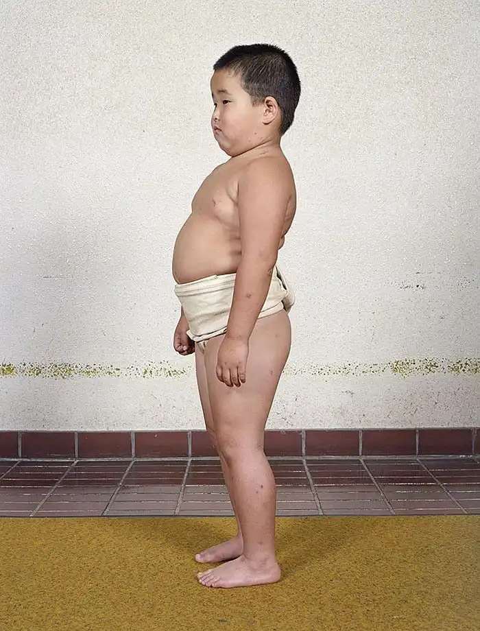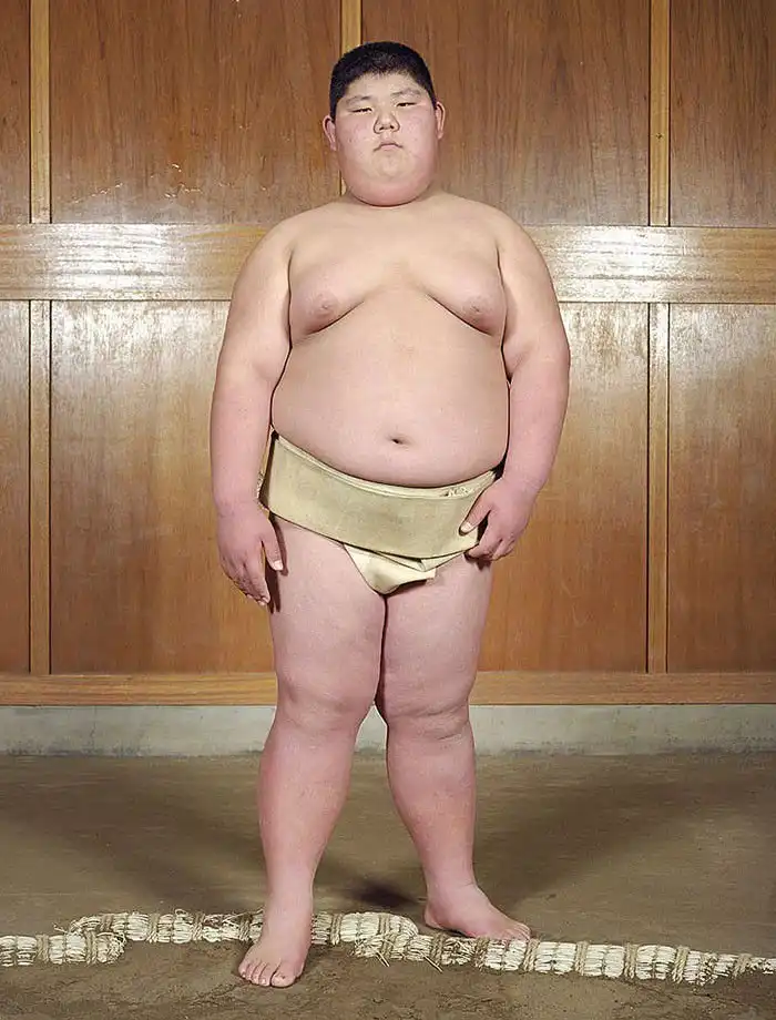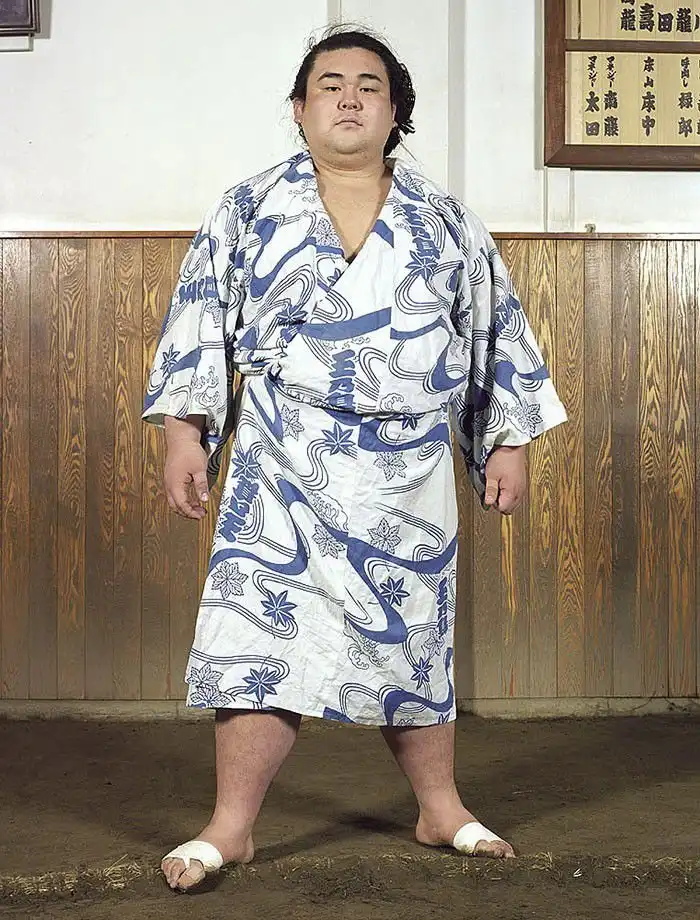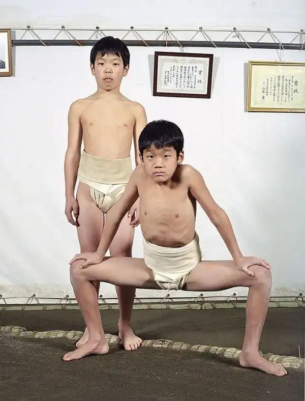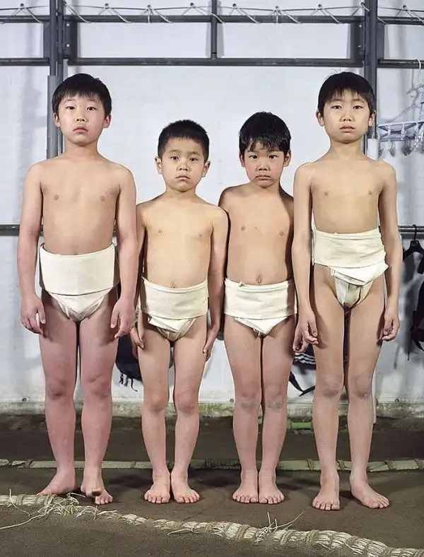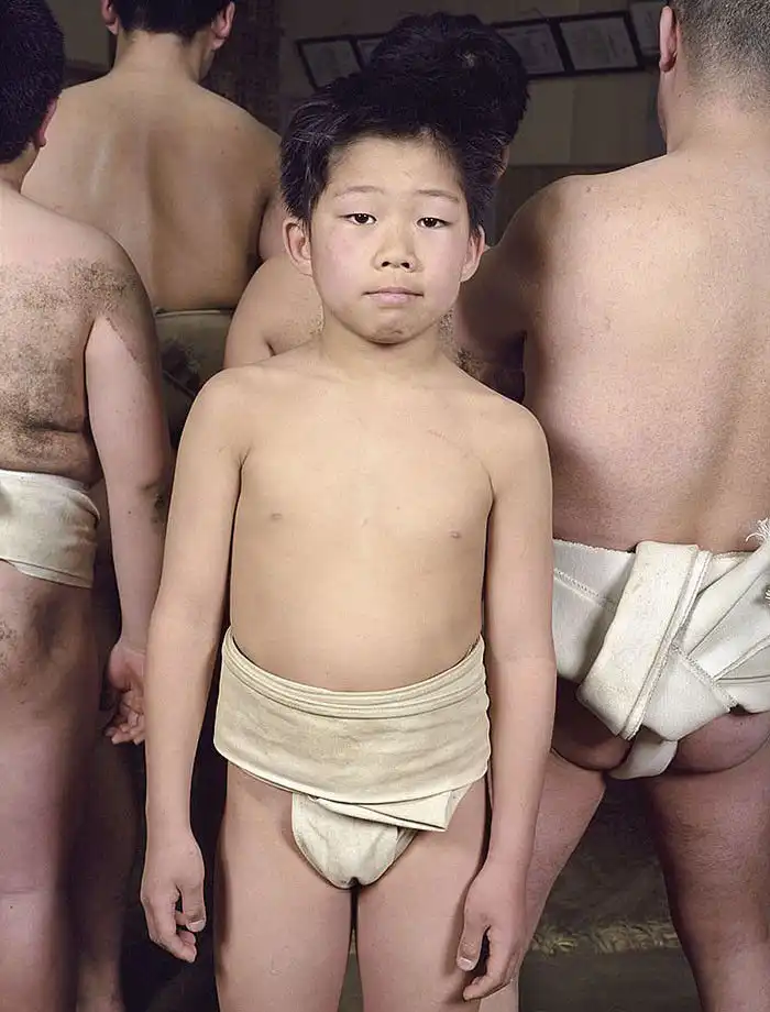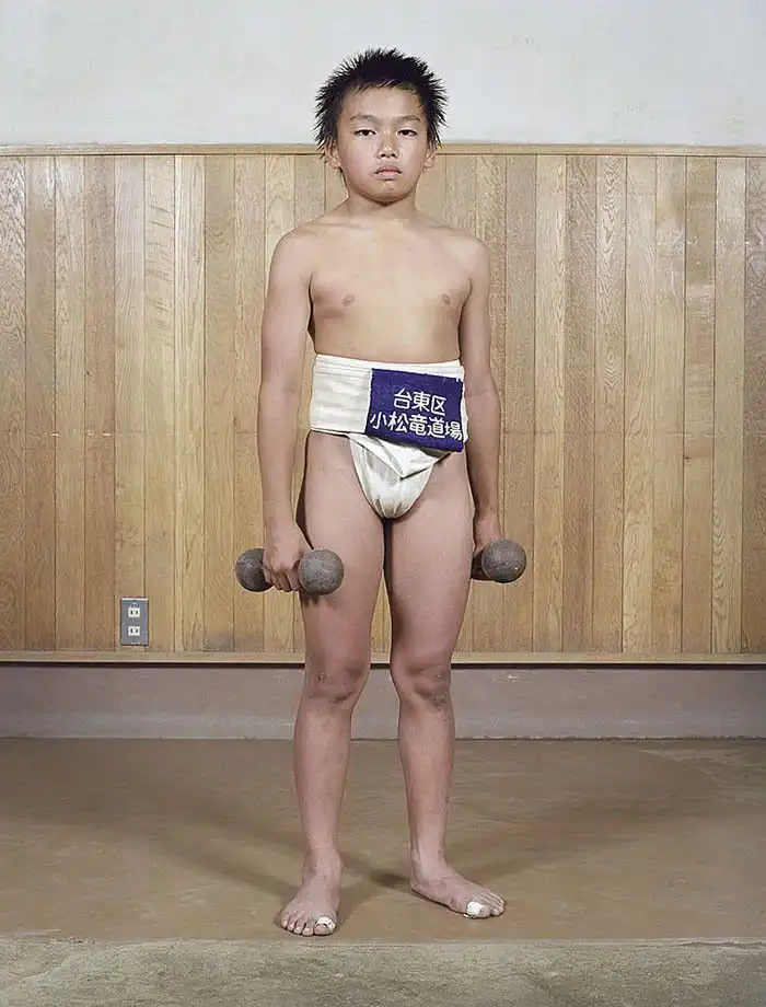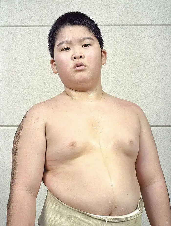 Лица героев демонстрируют почтение; у большинства из них пронизывающий взгляд. Такой взгляд – своего рода подготовка в борьбе созерцательной, ведь сумо – это не просто телесная стачка, это и борьба психологическая, выраженная в борьбе взглядов – в прямом смысле этого слова. Порой опытный борец может упасть от напористого взгляда своего менее крупного соперника, в этом и заключена суть философии сумо. Но все же массивное тело для сумоистов также важно – даже многие юные борцы весят далеко за сотню.
