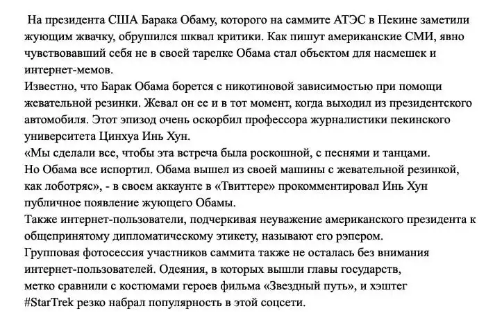 Визит Барака Обамы на саммит стран АТЭС (англ. APEC) обернулся для американского лидера массой насмешек, которые быстро заполонили китайский интернет.