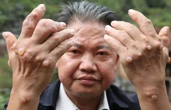 В одной из деревень на юге Китая как минимум 20 человек страдают от странного недуга, поставившего ученых в тупик. Заболевание поражает суставы и вызывает появление волдырей. Есть предположение, что речь идет о болезни Кашина-Бека, возникающей при нехватки в организме селена и йода. Как лечить эту заразу медики пока не знают. Исследователи на данный момент изучают химический состав местной пищи и воды.