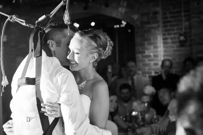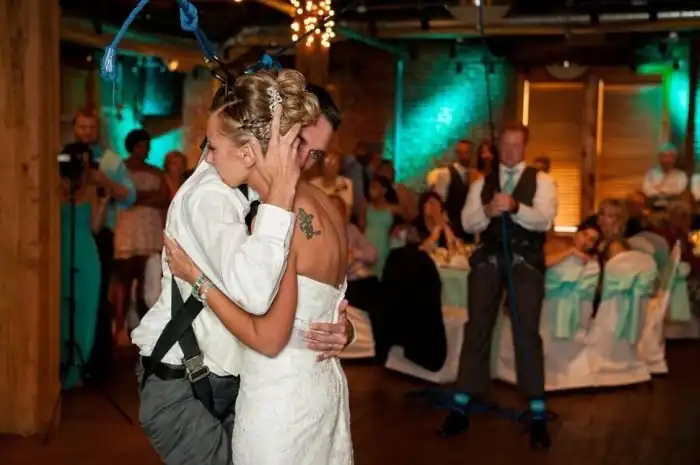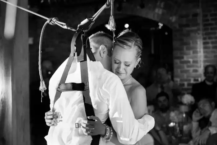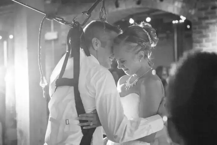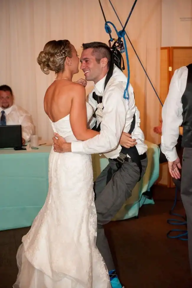 Парализованный ниже пояса Джои еще до страшного ДТП познакомился с девушкой Мишель, с которой у него завязались серьезные отношения. На свадьбе жених решил сделать приятный сюрприз своей невесте и станцевал с ней без инвалидного кресла. Осуществить подобное позволила система тросов, удерживавших парня в вертикальном положении. Сюрприз настолько растрогал невесту и гостей, что многие не смогли удержаться от слез.