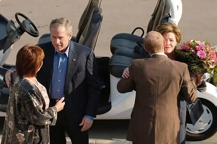 Путин приветствует супругу президента США Лору Буш, 2006 год