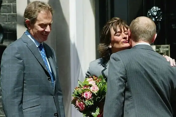 Путин приветствует супругу премьер-министра Великобритании Шери Блэр