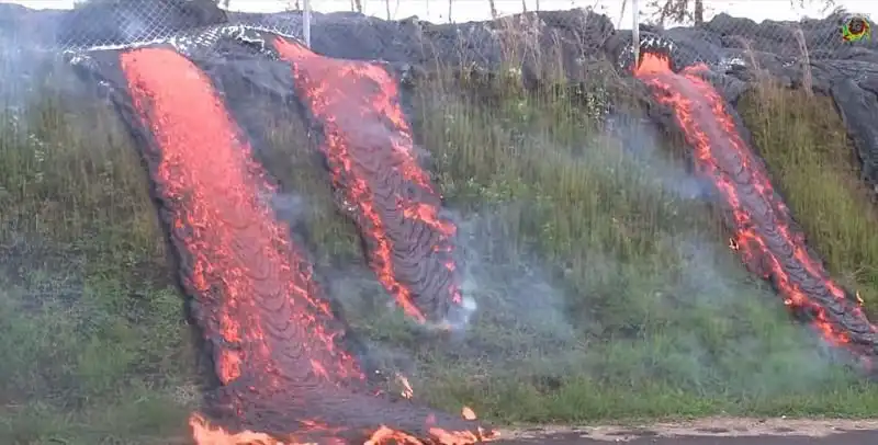 На острове Гавайи есть действующий вулкан Килауэа, и он потихоньку извергается начиная с 1983 года. Потоки лавы постепенно подбираются к населенному пункту Пахоа, в котором проживает около тысячи человек. Один домик лава уже похоронила.