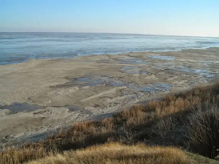 Уникальное природное явление «Ветровой сгон» в Ростове. Из-за сильного многодневного северо-восточного ветра вода из залива полностью ушла в Азовское море, когда ветер стих, вода вернулась обратно.