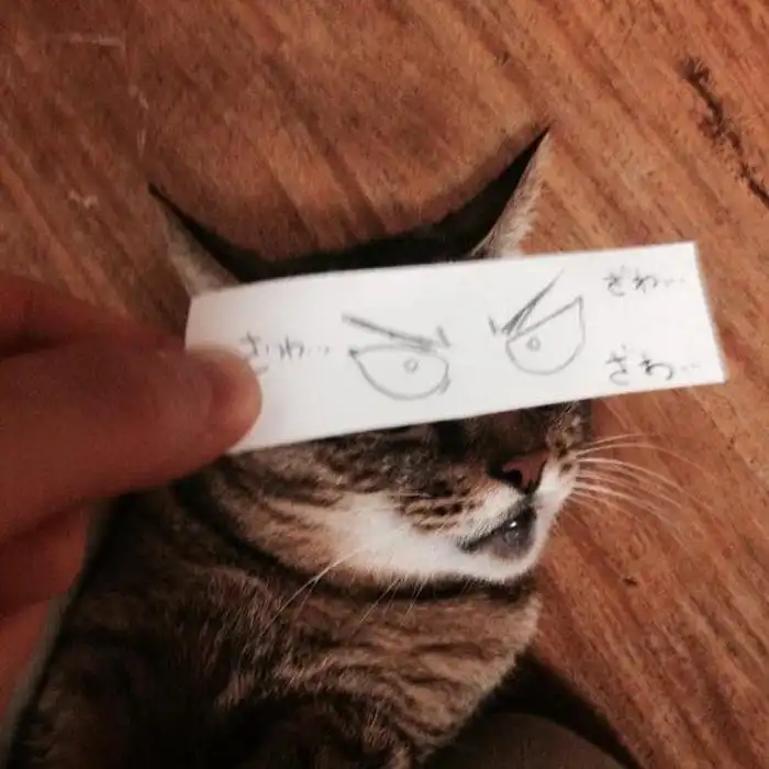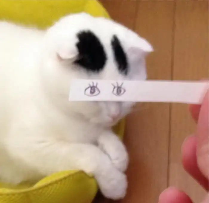 У японских пользователей Twitter появился новый фото-тренд, под названием «neko montaaju» (котомонтаж). Владельцы котиков превращают своих четвероногих друзей в полумультяшных персонажей, прикладывая к мордочкам животных бумажные полоски с нарисованными глазами. Все это выглядит забавно и смешно.
