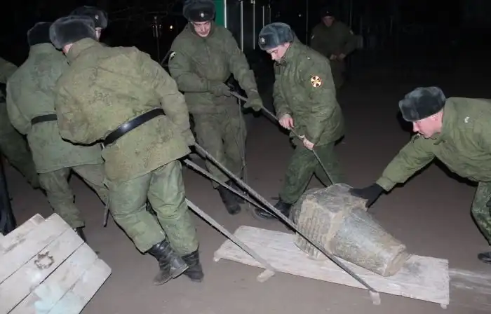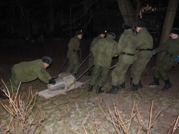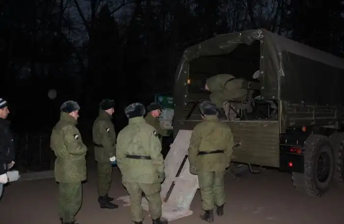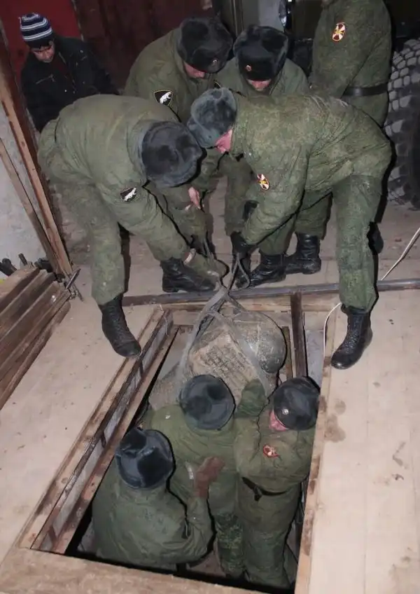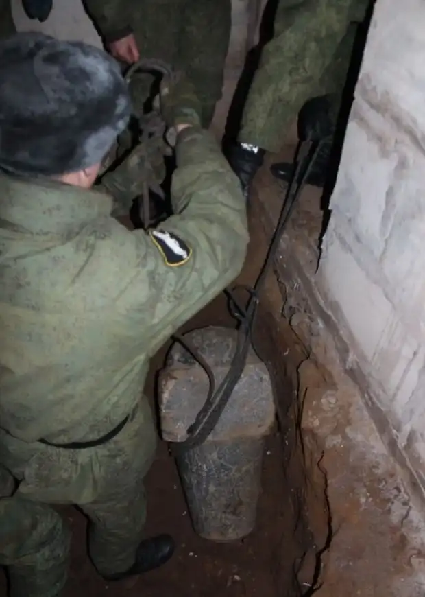 Самостоятельно вытащить камень весом в несколько сотен килограмм не удалось, поэтому «случайный археолог» обратился в местный краеведческий музей, который нашел транспорт и людей для перевозки надгробия. Военнослужащим вместе с хозяином гаража пришлось изрядно потрудиться, чтобы достать надгробие из подвала, загрузить в грузовик «Урал» и отвезти в Преображенский храм, где теперь оно будет находиться.