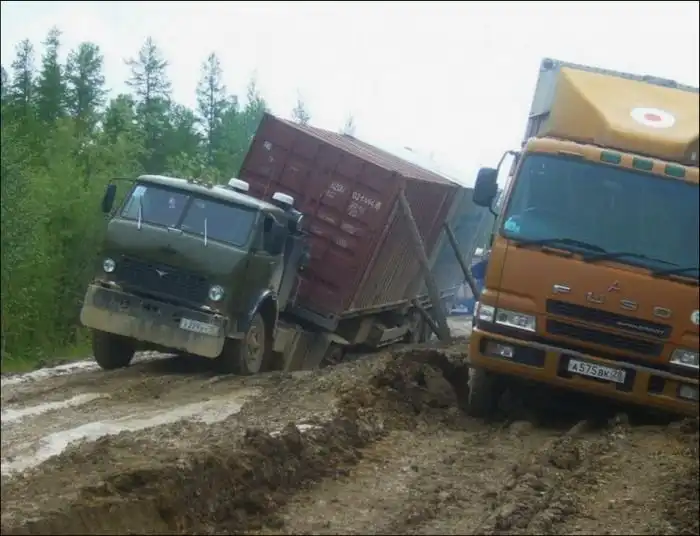 Федеральная трасса А360, также известная под названием «Лена» или Амуро-Якутская магистраль, по праву считается одной из самых опасных дорог в мире. На протяжении 1163 км чередуется асфальт, некое подобие дороги и непроходимое болото, в котором постоянно вязнет огромное количество автомобилей. С 2012 года власти взялись за строительство полноценной дороги, но, судя по всему, появится она очень нескоро.