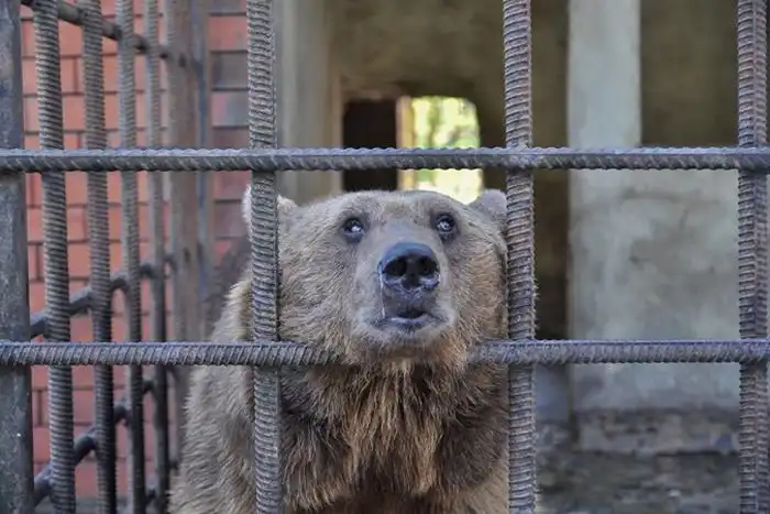 То, что косолапых держат в небольших клетках, в которых полным полно мусора и их собственных экскрементов, усугубляется и тем, что отдыхающие в ресторане периодически спаивают их алкоголем, кормят чипсами, а еще слепят фарами своих машин. Медведи находятся в ужасном состоянии, за их здоровьем никто не следит и один из них ослеп на один глаз.