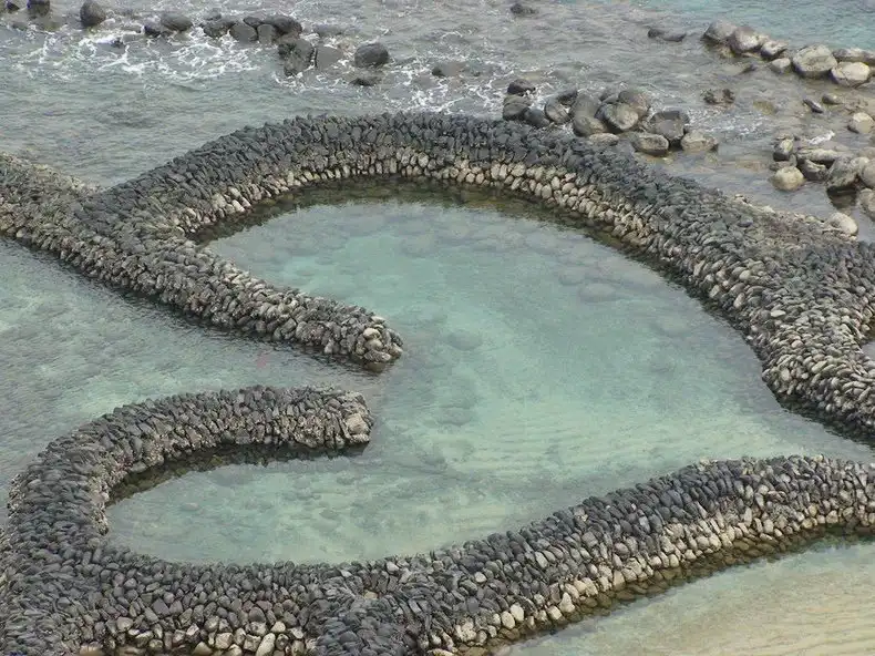 Это существенно упрощало отлов рыбы, так как в открытое море выходить было рискованно. В районе архипелага Пэнху, неподалеку от острова Тайвань, таких ловушек сохранилось более пяти сотен. Одной из самых известных таких ловушек считается ловушка в форме двух сердец, расположенная неподалеку от городка Чимеи. Она построена из базальта и коралловых рифов.