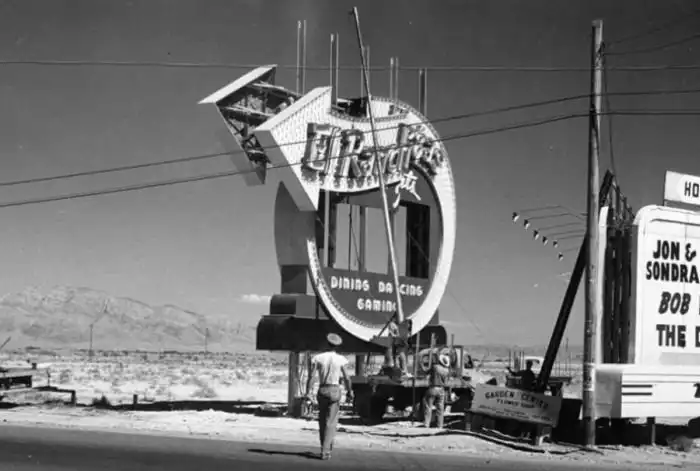 Первый неоновый знак в Лас-Вегасе в 1941 году и современный Лас-Вегас