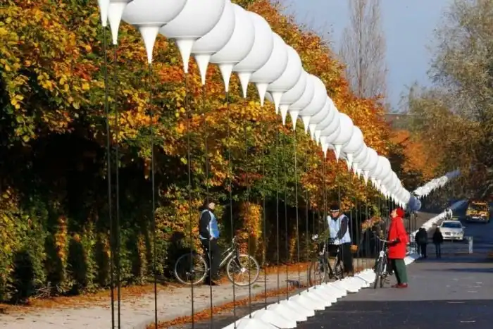 По маршруту, где когда-то находилась граница, установили 8000 шаров. Позднее их запустили в воздух.