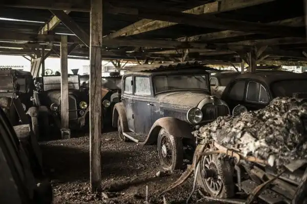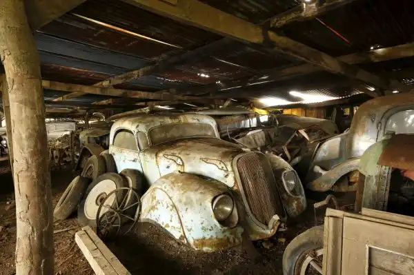 История со старым амбаром, забитым сокровищами. И такой амбар действительно нашелся недавно во Франции, где под слоем пыли, грязи, а иногда и навоза обнаружились около 100 легендарных винтажных автомобилей таких марок как Bugatti, Porsche, Maserati, Ferrari.
