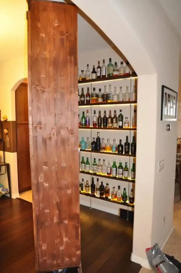 Шкаф служит дверцей для места, в котором хозяин этого дома хранит свою коллекцию виски. Размер коллекции действительно впечатляет, но еще больше впечатляет то, как умело спрятана эта коллекция.