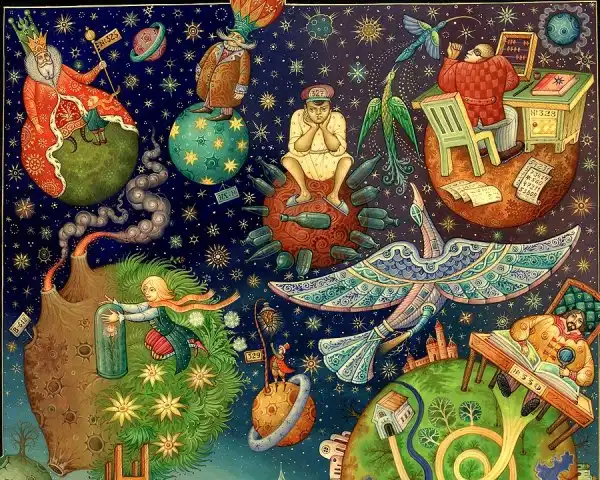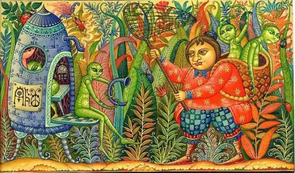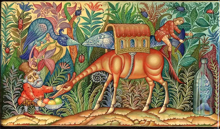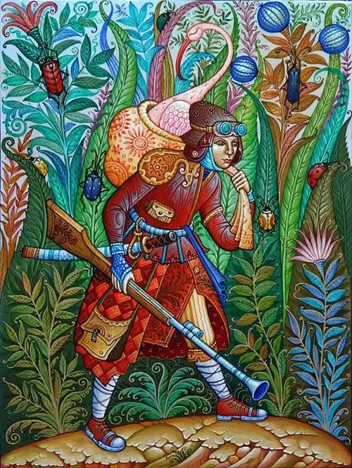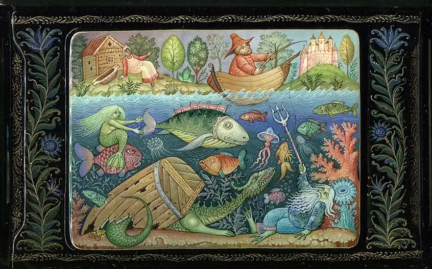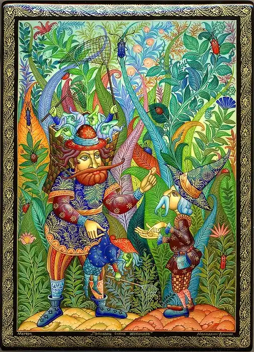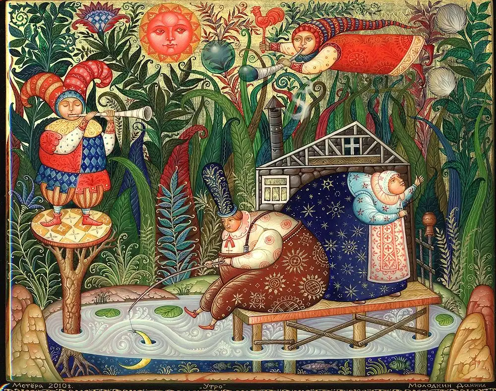 Даниила Молодкин родился в поселке Мстёра в семье художников. Учился там же в известном Мстёрском художественном училище. Работает в палехском стиле лаковой миниатюры. Сюжеты кажутся несколько необычными для русской росписи, но если вдуматься, то первые мастера в Палехе тоже ведь использовали сюжеты современных для себя сказок.