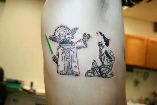 Поклонников великой киноэпопеи Лукаса в мире десятки миллионов, и, безусловно, многие из них делали себе татуировки, дабы увековечить на своем теле любовь к «Звездным войнам». Так оно и оказалось. Татуировки могут смешить, вызывать жалость, раздражать и восхищать. Но, в любом случае, они есть и от них никуда не деться.