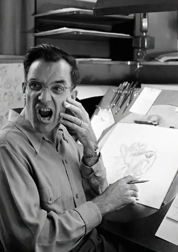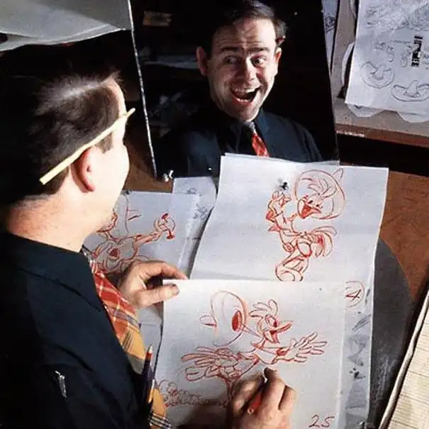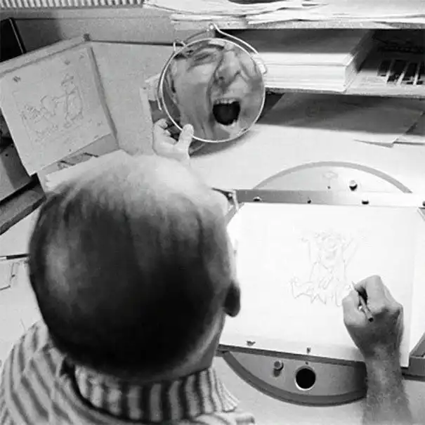 У каждого художника-мультипликатора анимационной студии Дисней было зеркало на рабочем столе, ведь мимику мультяшных персонажей срисовывали с самих себя. Подборка фотографий рабочих будней легендарных профессионалов прошлого столетия точно развеселит вас.