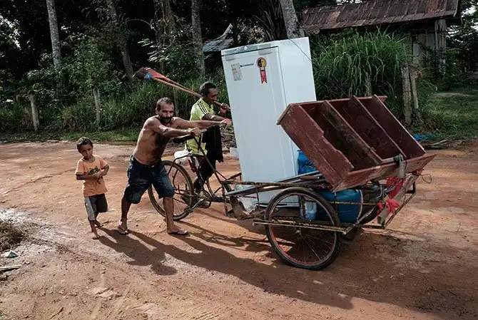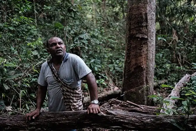 Раймундо Перейра собирает сок каучуковых деревьев в лесу близ населенного пункта Шапури на северо-западе Бразилии. Сок предназначен для местной фабрики резиновых контрацептивов. Это единственное в мире производство презервативов, использующее каучук из тропических лесов. Как известно, экзотический зеленый покров уже много лет находится в экологической опасности. Поэтому часть прибыли фабрика направляет на мероприятия по защите тропических лесов.