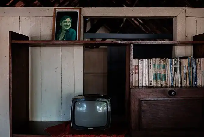 Это интерьер дома Чико Мендеса, еще одного сборщика каучукового сока. Его застрелили в 1988 году местные хозяева ранчо, ответственные за вырубку тропического леса. Чтобы почтить память Мендеса, его жилище превратили в подобие музея.