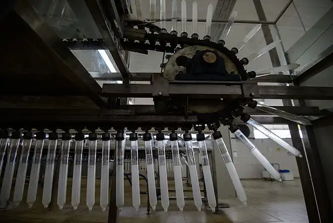 Перейра собирает сок в бидоны.