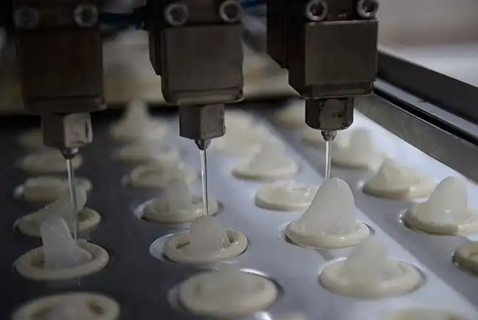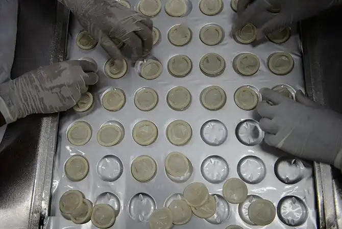 На заводе производится около 100 миллионов презервативов в год.