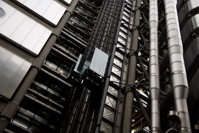 Второе название здания Ллойд-билдинг в Лондоне — дом наизнанку. Получил он его за то, что инженерные коммуникации, лестницы и лифты архитекторы разместили снаружи. Стены всех 12 лифтов выполнены из стекла, что во время подъема обеспечивает беспрепятственный обзор на окрестности. Доступ в здание имеют только сотрудники, но во время ежегодного Open House London зайти в Ллойд-билдинг и прокатиться на лифте может любой желающий.